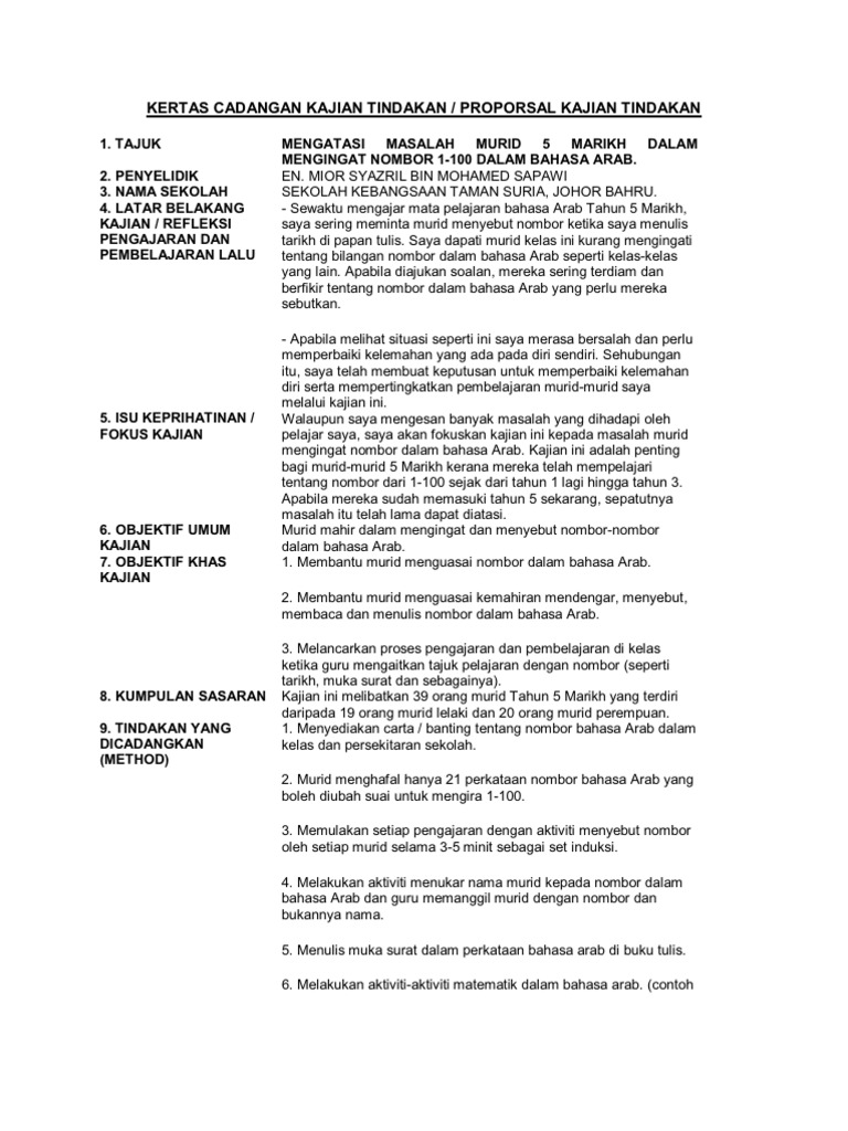 Kertas Cadangan Kajian Tindakan Bhs Arab Pdf